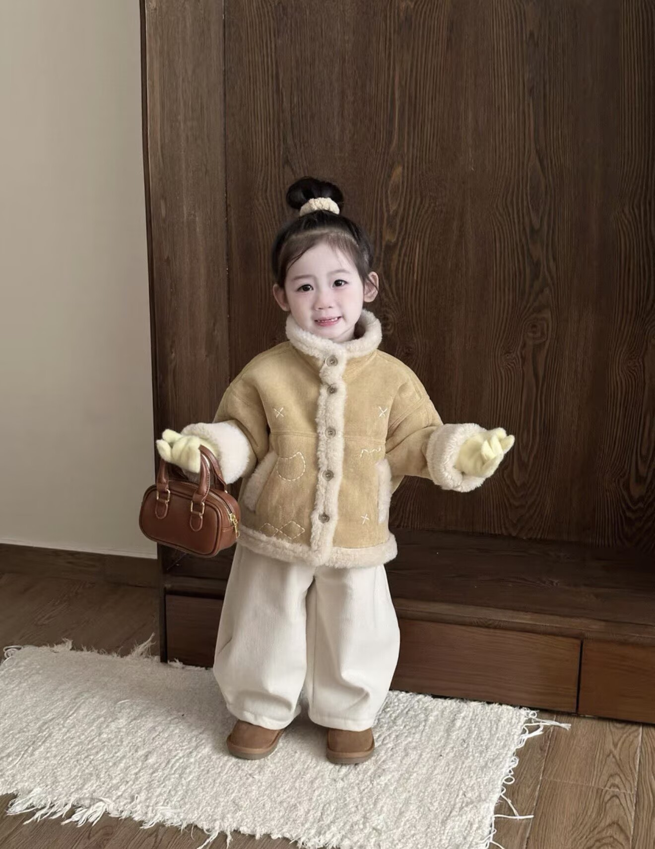 女童加绒外套2025冬季新款宝宝洋气皮毛一体儿童衣服加厚保暖冬装