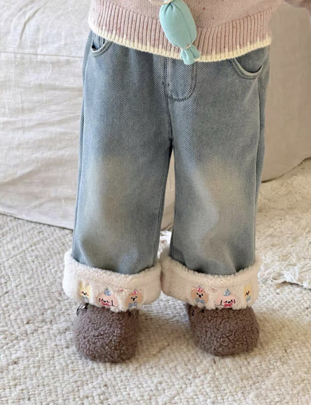 两岁女宝宝加绒牛仔裤秋冬款女童冬装休闲长裤一岁半婴儿外穿裤子