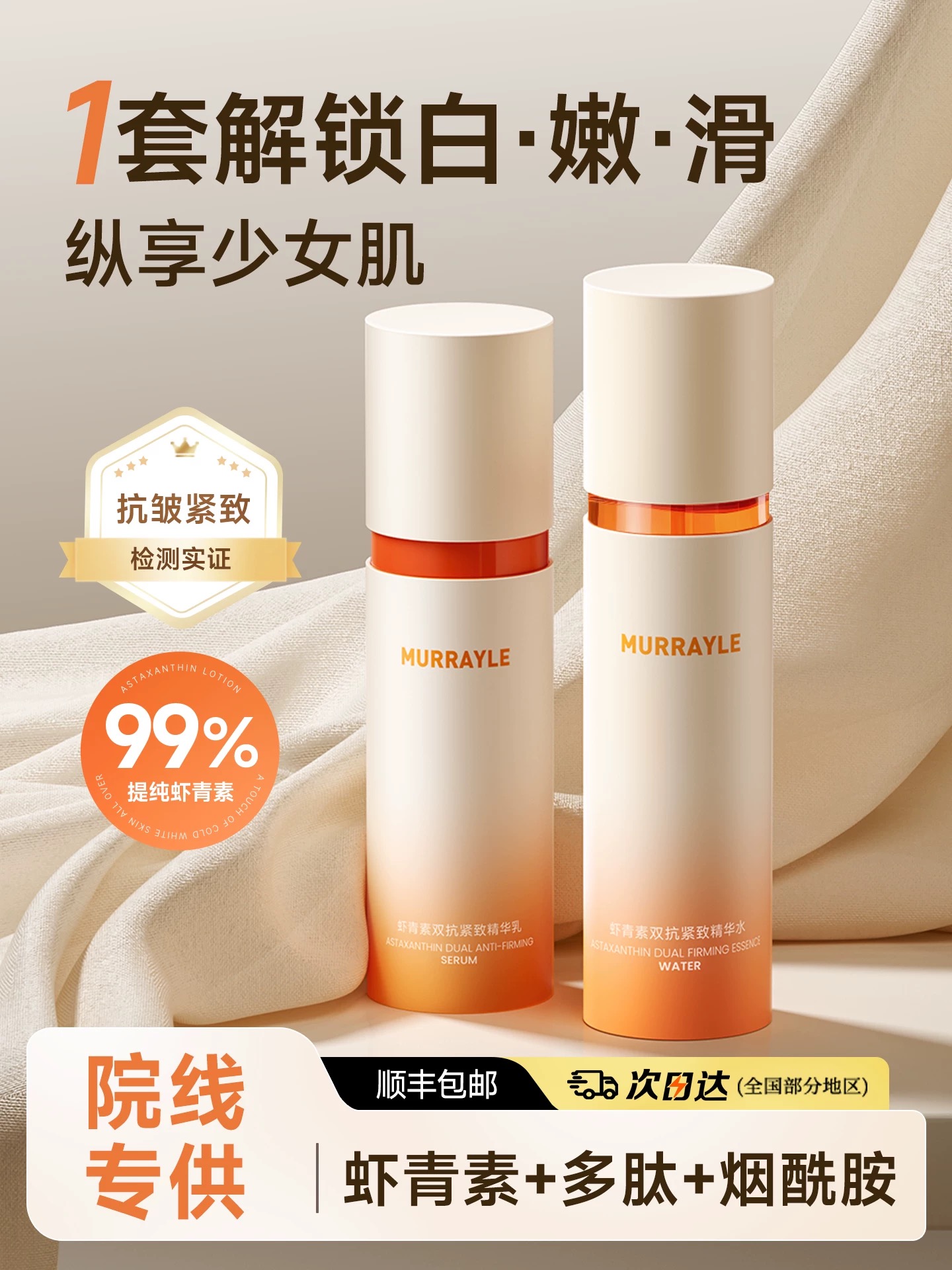 虾青素水乳套装美白去黄提亮抗皱淡纹紧致补水保湿官方正品护肤品
