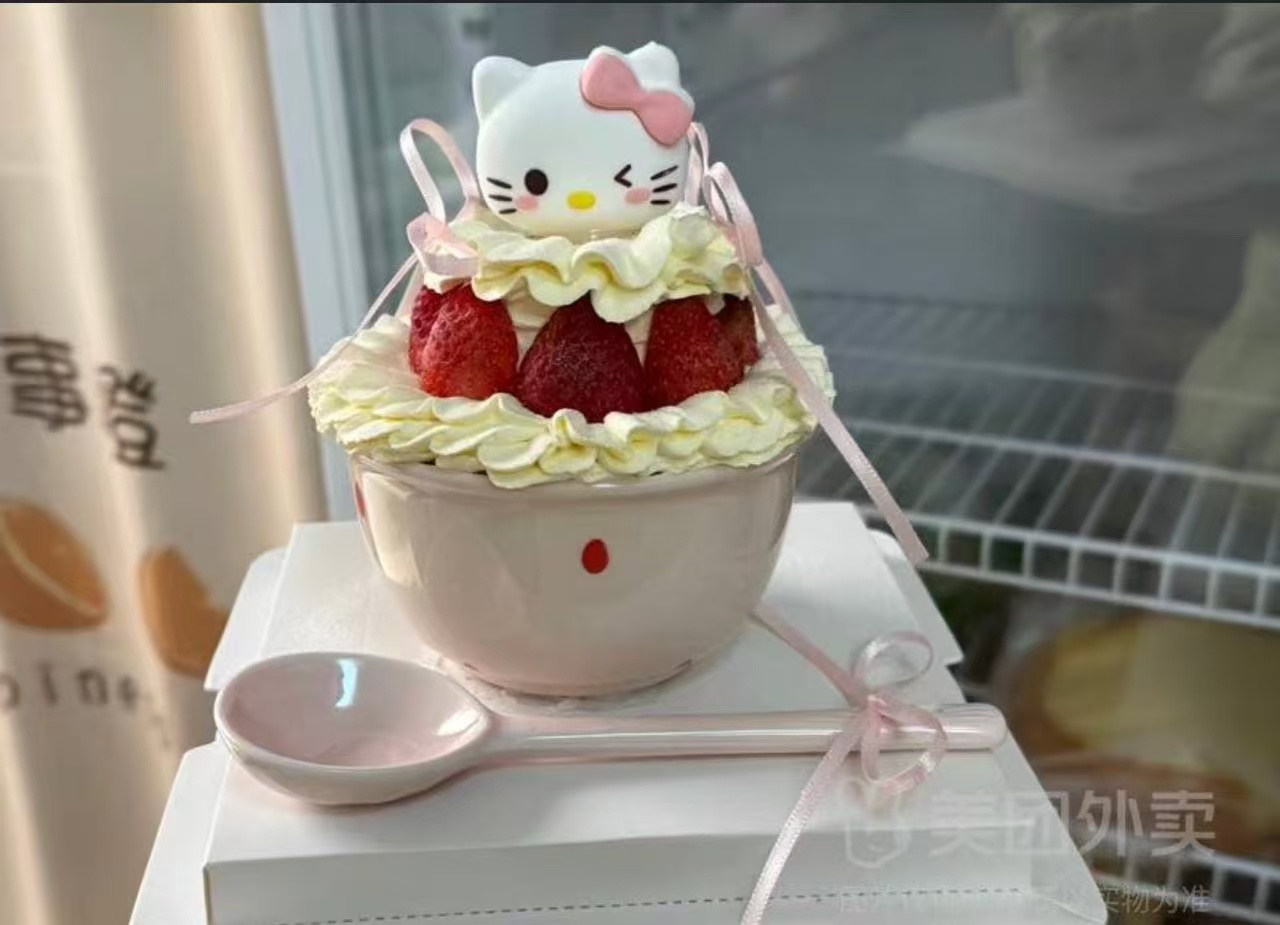 冬日限定【4英寸陶瓷碗】kitty猫草莓碗蛋糕